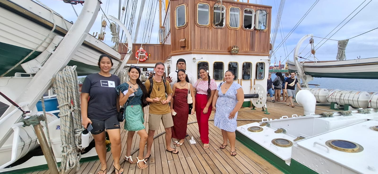 Le 10 septembre, les élèves de LLCE espagnol et de 2de, 1ere et Terminale euro espagnol ont eu la chance de visiter le bateau école chilien Esmeralda qui a fait escale dans le port de Papeete.