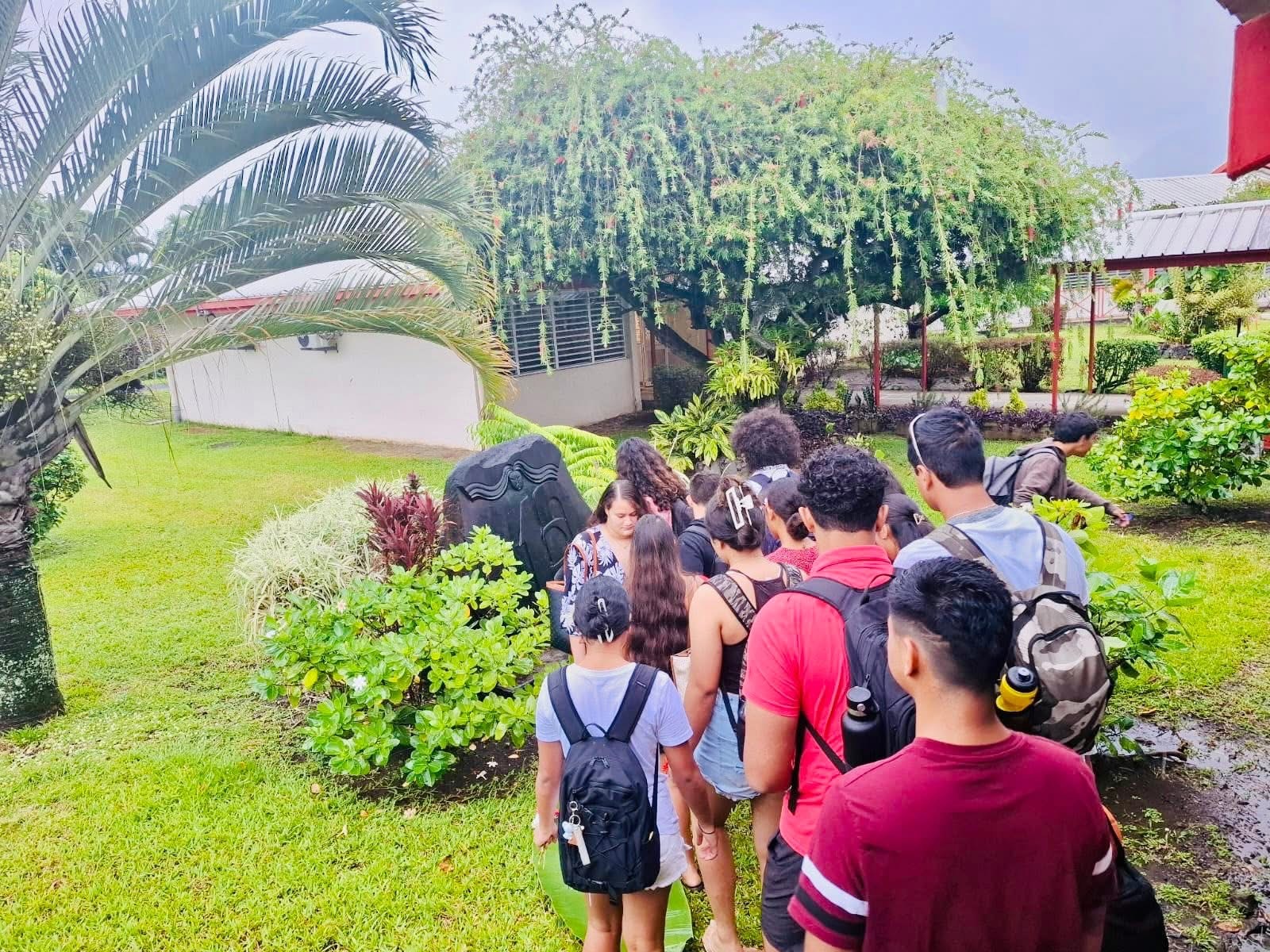 Vous pouvez venir déposer une offrande (fruit, feuille, fleur, végétal frais…) près de la pierre située à l’entrée du lycée, ou simplement toucher la pierre pour tenter de recueillir un peu de “mana” transmis par les ancêtres du clan des Teva dont Papara fait partie.
