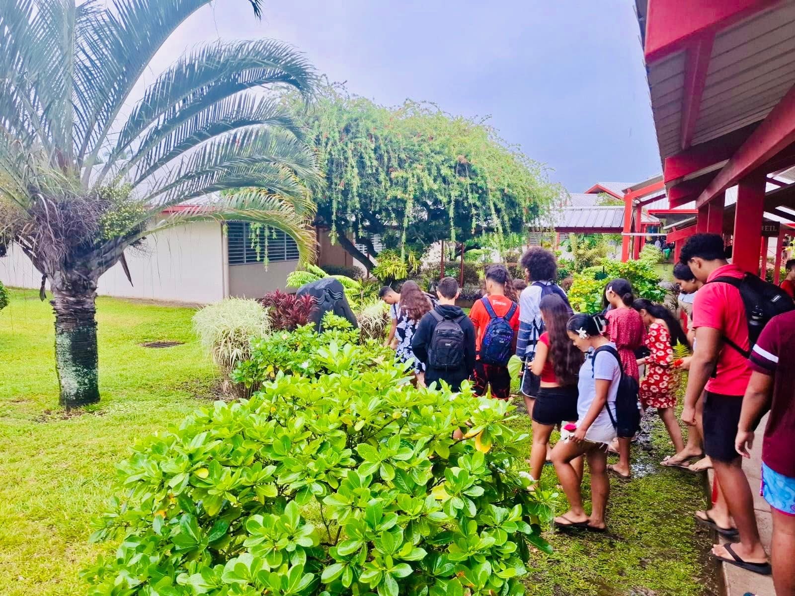 Vous pouvez venir déposer une offrande (fruit, feuille, fleur, végétal frais…) près de la pierre située à l’entrée du lycée, ou simplement toucher la pierre pour tenter de recueillir un peu de “mana” transmis par les ancêtres du clan des Teva dont Papara fait partie.